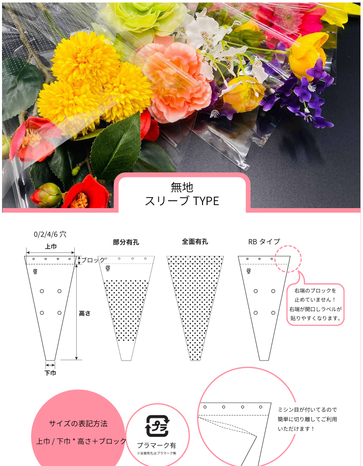 豊富なサイズラインナップを揃えた無地スリーブタイプです。
