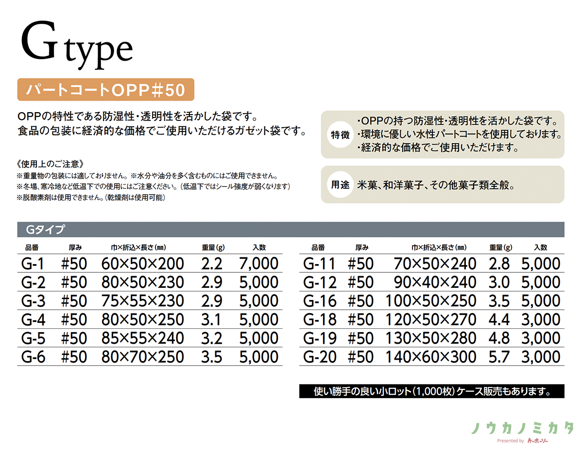 ガゼット袋 G-4 パートコートOPP 80×50×250