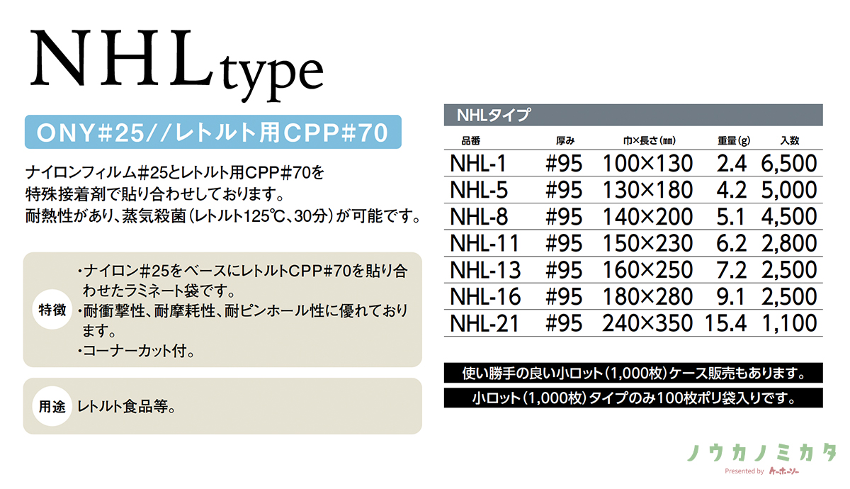 三方袋 NHL-16 ONY レトルト用CPP 180×280
