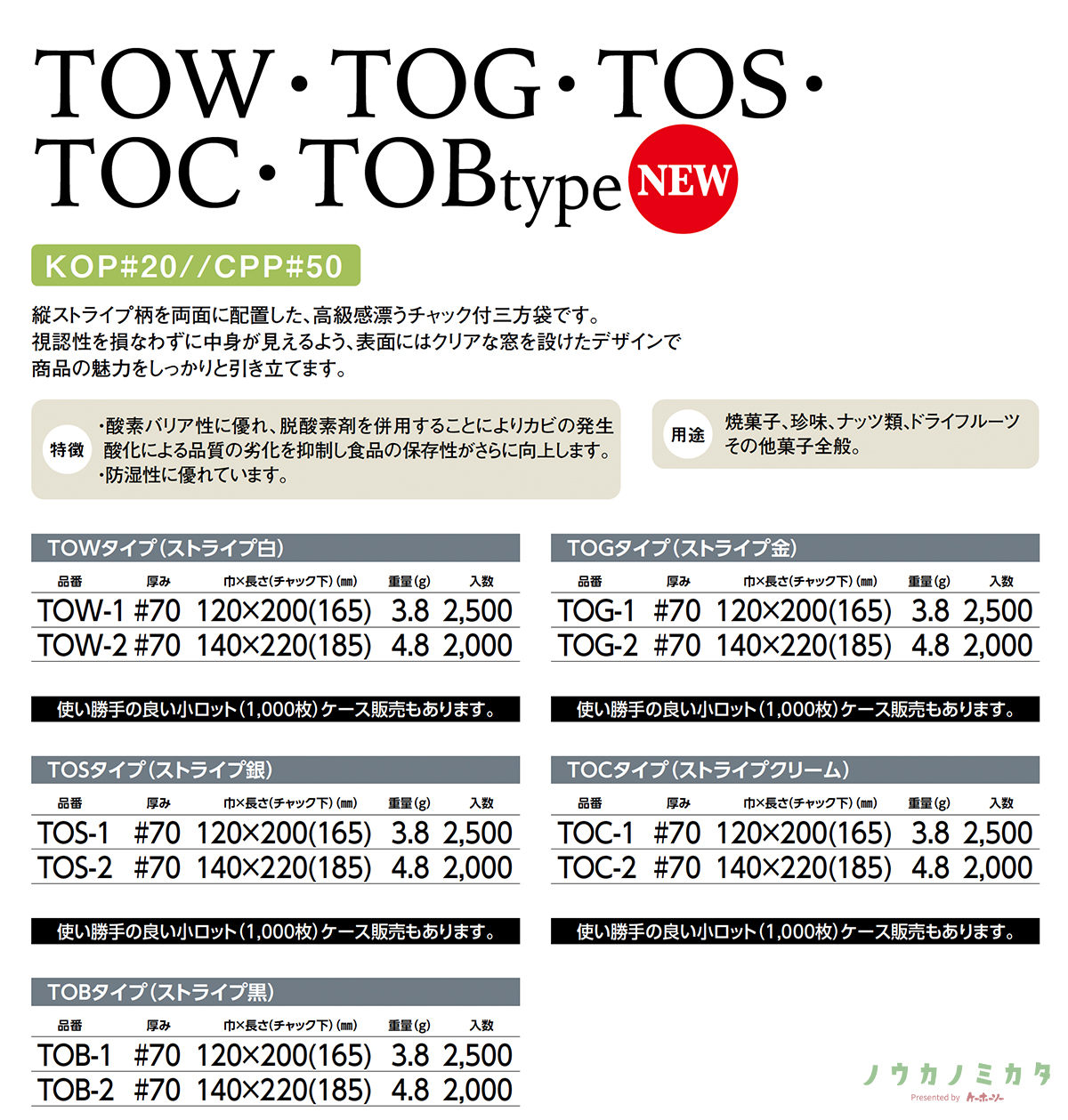 チャック付三方袋 TOB-1 KOP CPP 120×200(165)