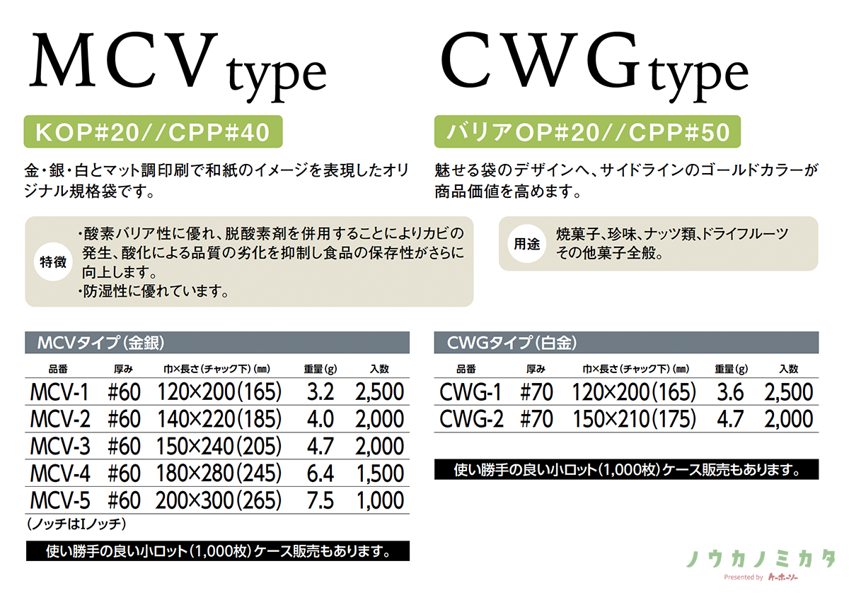 チャック付三方袋 MCV-2 KOP CPP 140×220(185)
