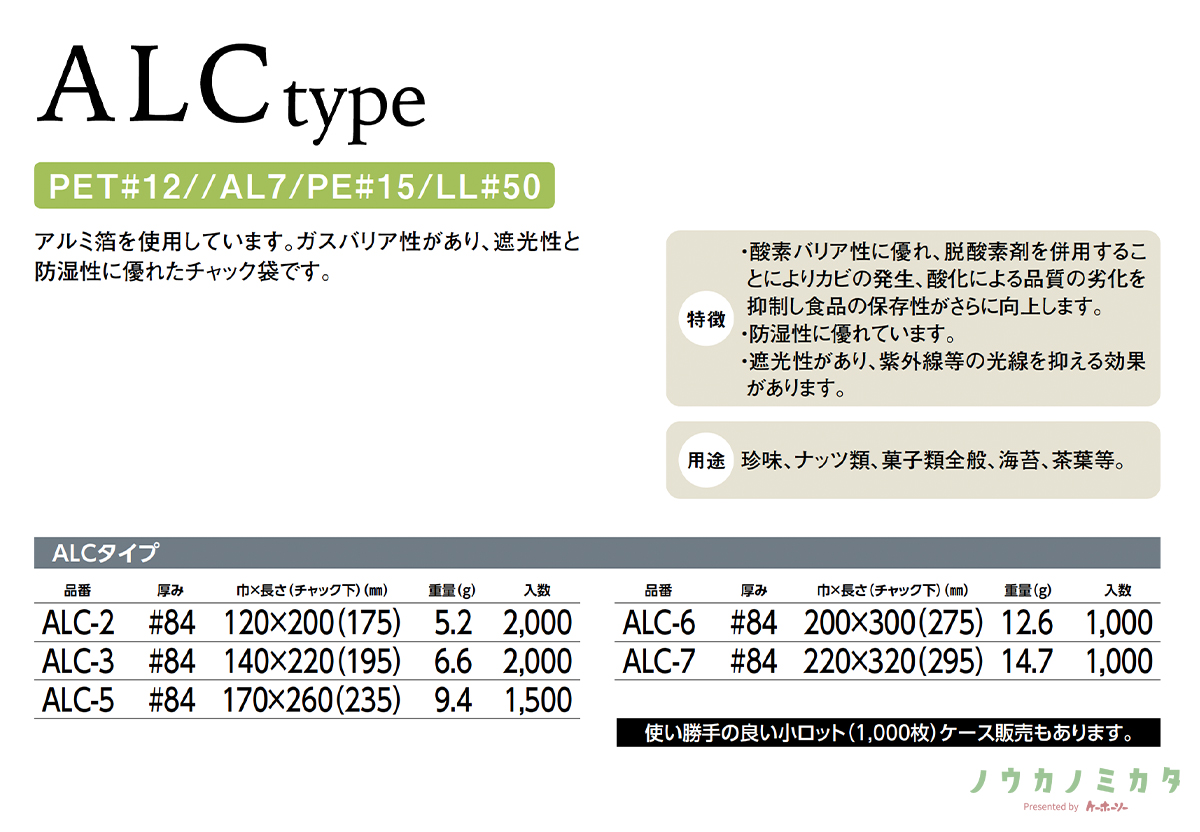 チャック付三方袋 ALC-3 PET 140×220(195)