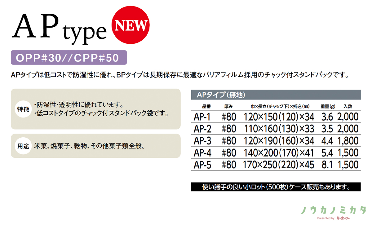 チャック付スタンドパック AP-2 OPP CPP 110×160(130)×33