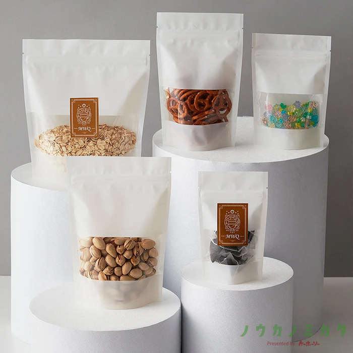 チャック付スタンドパック袋 MWQ-1 MWQタイプ(白) OP 透明蒸着PET CP 110×160(130)×33