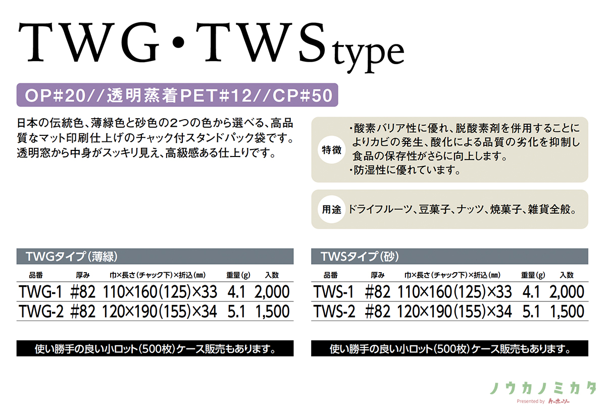 チャック付スタンドパック袋 TWG-2 TWGタイプ(薄緑) OP 透明蒸着PET CP 120×190(155)×34