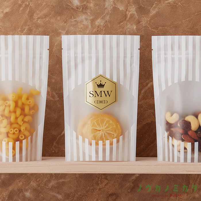 チャック付スタンドパック袋 SMW-2 SMWタイプ(白ストライプ) マットOP 透明蒸着PET LL 120×190(160)×34