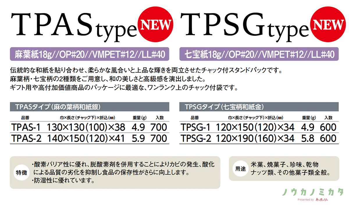 チャック付スタンドパック袋 TPAS-1 麻の葉柄和紙銀 130×130(100)×38